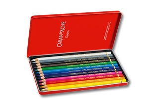 We offer a wide range of Caran d'Ache coloured pencils. In a variety of sizes and colours, you can choose from water-soluble and water-resistant sets. Suitable for watercolour paintings, colouring, and drawing. A personal message can now be engraved on the shiny silver plate that will be placed on the tin box.