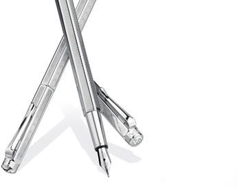 The Caran d’Ache ballpoint pen is well known for its unique “Goliath refill”, so called because it can write up to 600 pages of A4 before running out. The affordable 849 collection and the distinctive Ecridor with its hexagonal body features a push button mechanism, whilst the premium Leman operates via a twist. All collections from Caran D’Ache come with a blue ink refill.