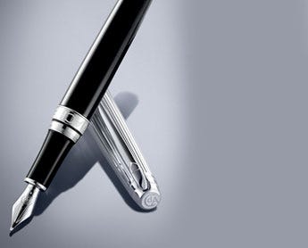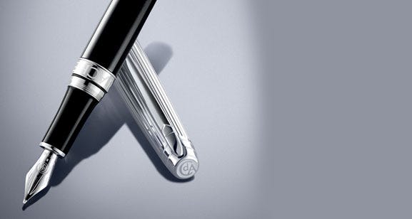 Produced in Geneva, Caran d’ache pens are known for fine cratsmanship you would expect from Swiss made (all pens have a lifetime guarantee). Fountain pen nibs, ballpoint and roller pen tips are checked for priming quality and writing flow, and inks are tested for lightfastness. We stock the Ecridor, a distinctive pen with a slim hexagonal body typical of the brand. We also carry Caran D'Ache ink cartridges and refills…their ballpoint refill known as the Goliath can write for up to 600 pages of A4.