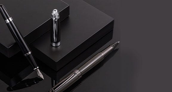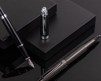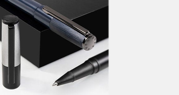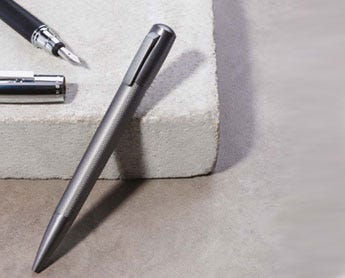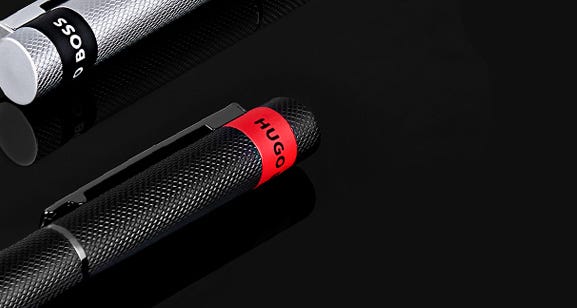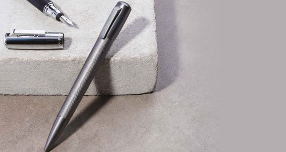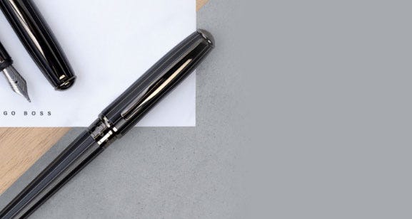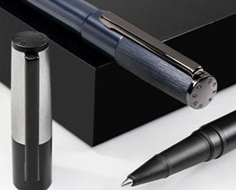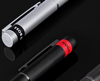 Since 1924, Hugo Boss have developed a signature style for smart lines and handsome tailoring. Their collection of pens epitomise the Hugo Boss design aesthetic, with a focus on business appeal. Choose from the Essential range with its dark metal and intricately engraved pattern, and the superior weight of the Icon. Fountain pens take standard international cartridges, whilst ballpoint pens take ‘Parker style’ refills.