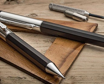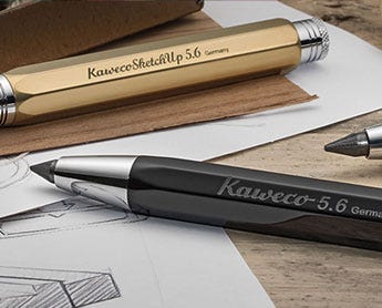 Marked out for their bold and distinctive designs, Kaweco pencils are well suited for sketching, draughtsmanship and general use. Kaweco are well known for their Sport range, designed with a short hexagonal appearance that is a joy to hold, and a unique push mechanism. Pencils are available in either a fine 0.7mm lead, or a more chunky 3.2mm. Those designs made from metal can be engraved, including the bestselling Kaweco Brass Sport.